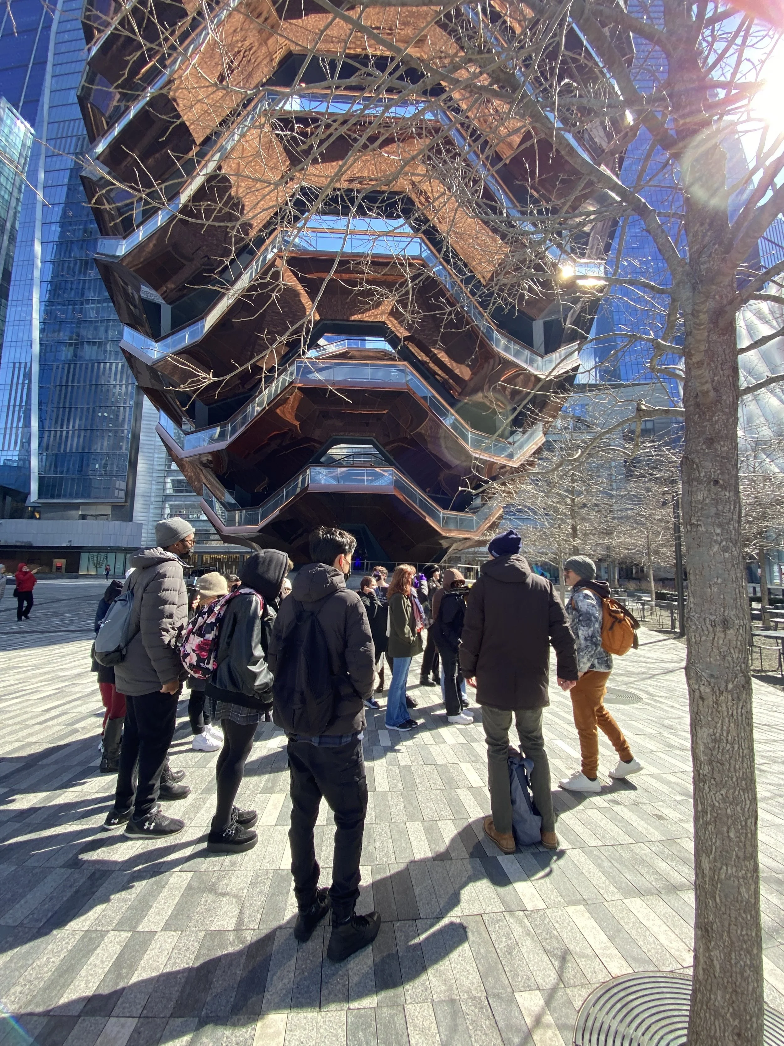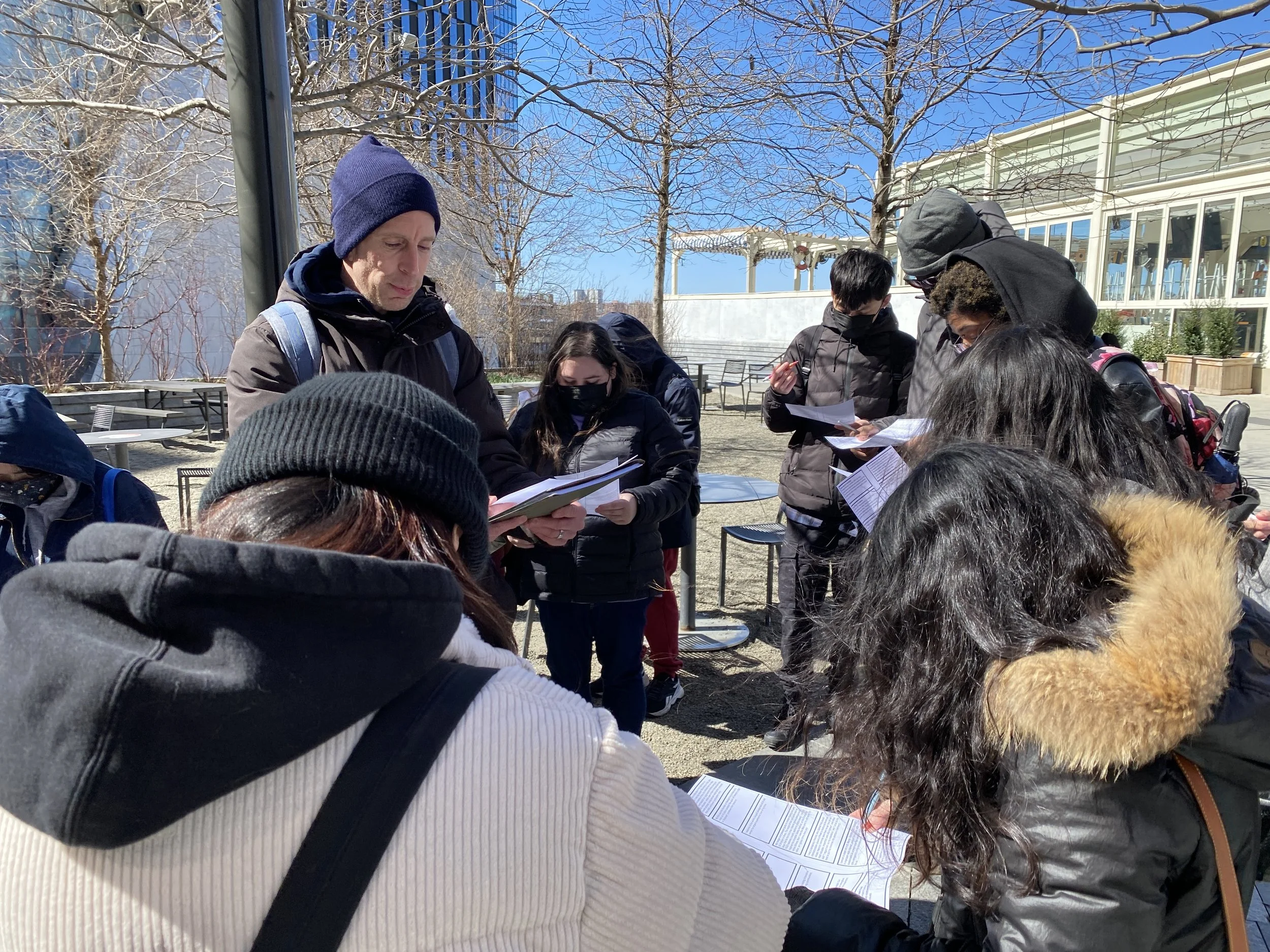 A drift is a guided, experimental journey through an urban landscape. Not quite a guided tour and not really a performance, but something in between. This drift through Hudson Yards included poetry, a quiz show round, a photo scavenger hunt and a re-mapping activity.